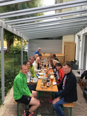 Wer laufen kann, kann auch feste feiern. Hierzu hatten Knut und Heike Wintergerst am Sonntag eingeladen. Nach unserem sonntäglichen langen Lauf, der dieses Mal mit 17 km durch die schöne Landschaft um Reichenbach herum nicht ganz so lang ausfiel, erwarteten uns die nötigen Durstlöscher und nach dem Duschen leckere Speisen und stimmungsfördernde Getränke. Hat echt Spaß gemacht. Danke, Heike und Knut.