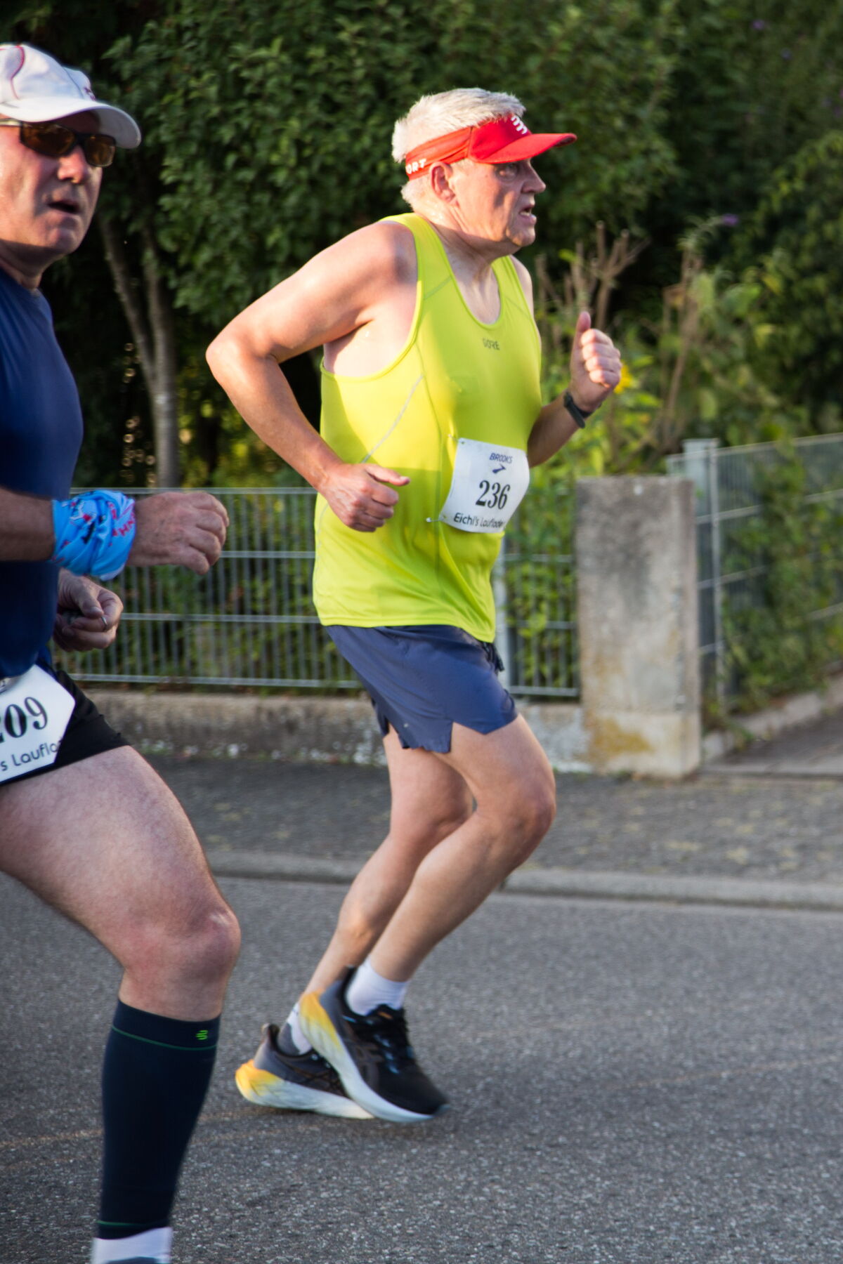 Uwe Dawid war in guter Form. Am Anfang sah ich ihn noch 20 Meter vor mir und dachte, ich kann mich an ihm orientieren. Doch dann merkte ich, wie er immer kleiner wurde, entweder weil er so schnell war oder ich so langsam. Nach km 4 überrundete mich sogar der schnellste Läufer, sodass ich frustriert zu den Zuschauern rief: “Do siehsch mol, wie langsam i bin.” Sie antworteten entspannt: “Isch schnell gnug, isch schnell gnug.” Als ich nach der dritten Runde erschöpft erneut an ihnen vorbeikam, riefen sie liebevoll: “Kumm nächschd Johr widder.”