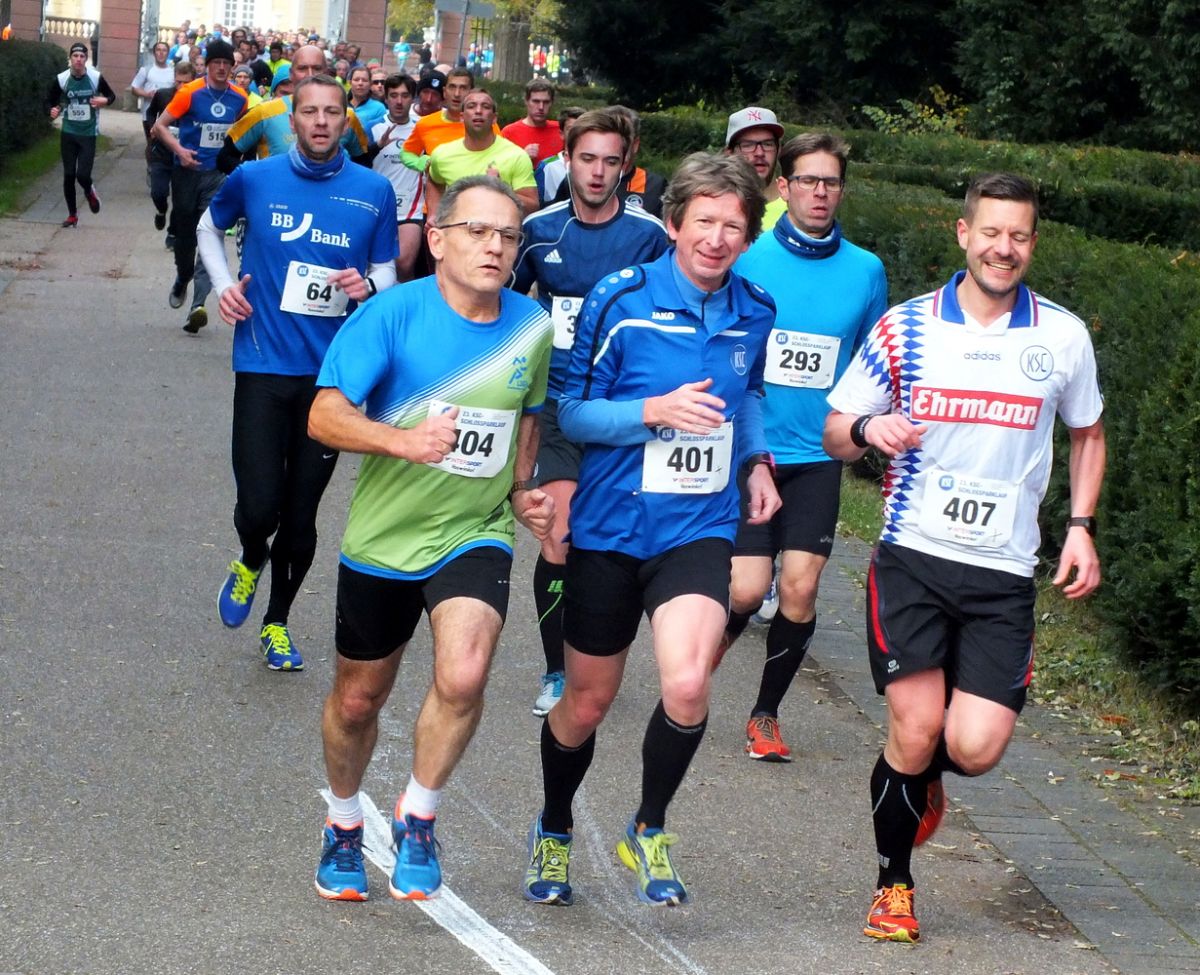 In seiner bereits 23. Auflage fand am 13.11. der Schlossparklauf des KSC statt. Eine attraktive Strecke, bei der man beim Hauptlauf über 9,9 KM insgesamt dreimal das Wildparkstadion passiert, zieht in jedem Jahr zahlreiche Teilnehmer an, insbesondere auch einige KSC-Anhänger unter den LSGlern. Leider ist der Lauf etwas unüberschaubar, da zum einen noch Staffeln mitlaufen und die schnelleren Läufer auf der dritten Runde den Weg durch die überrundeten Jogger und Walker finden müssen. Aber da es sich um eine "krumme" Distanz handelt, steht ohnehin der Spaß am Laufen im Vordergrund.